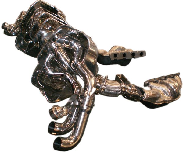 Los sistemas de escape pueden ser así de complejos, especialmente para motores grandes. No sólo depuran los gases de escape, sino que también generan un sonido específico. Las válvulas controladas