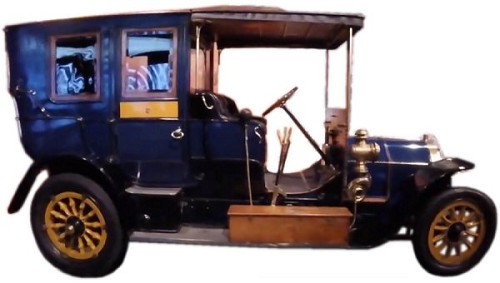 Cuatro cilindros en línea (bloque doble), 6.371 cc, 130 mm x 120 mm, válvulas laterales, 25 kW (34 HP), velocidad nominal 1.200 rpm, motor delantero con tracción trasera, cuatro velocidades no