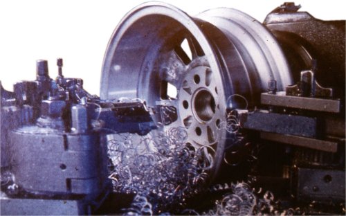 Producción de una llanta de rueda de aleación fundida en el torno. |